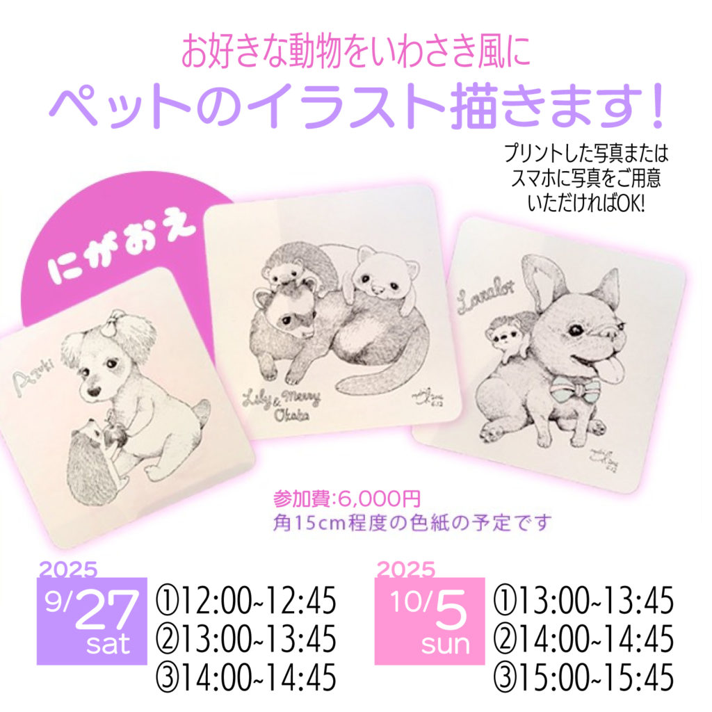 いわさき風ペットの似顔絵オーダー 2025年9月27 (土)/10月5日(日)
