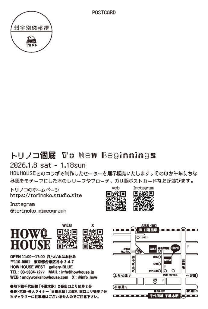 トリノコ個展「To New Beginnings」(2026.1.8 – 1.18)