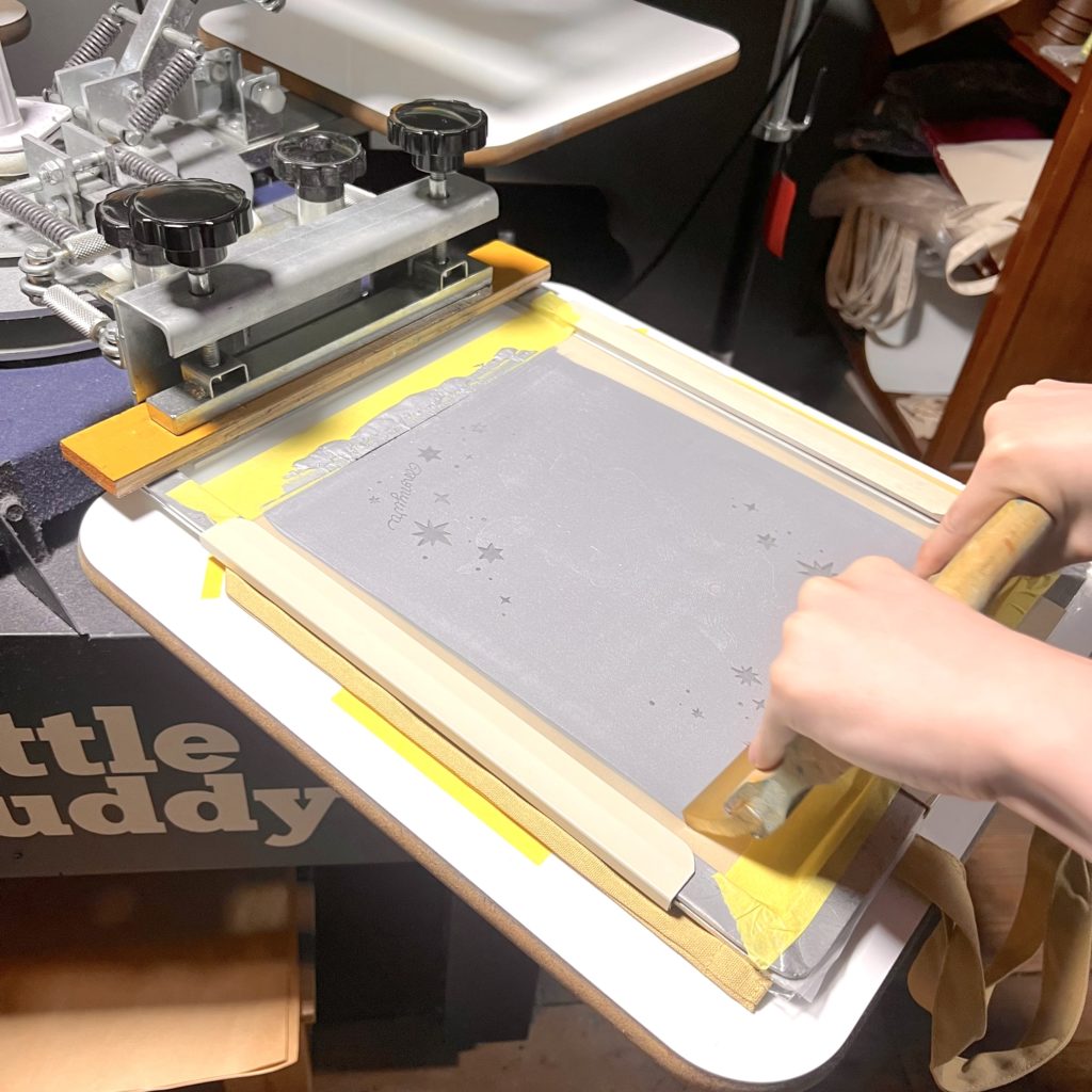 印刷する位置を決めてシルクスクリーンプリント、完成!